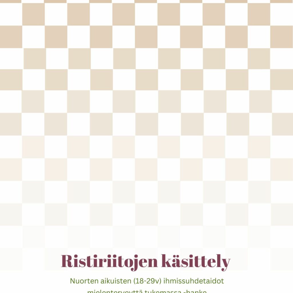 Täältä löydät ihmissuhdetaito-oppaat, jotka ovat kaikille ladattavissa. Oppaat ovat kehitetty osana Nuorten aikuisten ihmissuhdetaidot mielenterveyttä tukemassa -hanketta. Oppaat sisältävät tietoa eri ihmissuhdeteemoista ja harjoituksia.